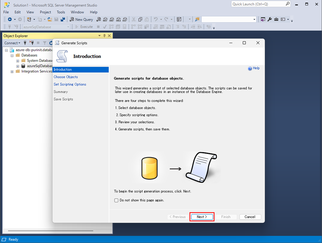 SSMS(SQL Server Management Studio)上のメニュー「Generate Scripts」を利用することでも、テーブル定義を取得できる。その手順は、以下の通り。