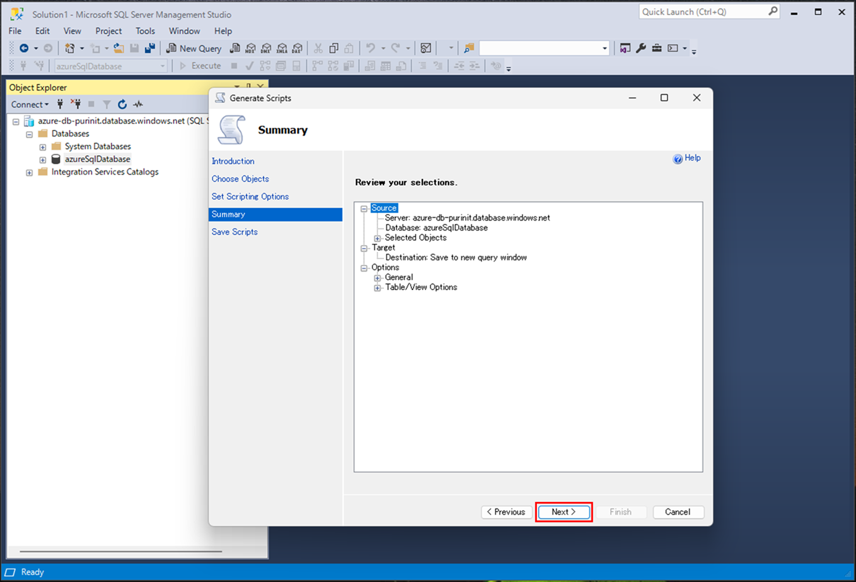 - SSMS(SQL Server Management Studio)の「Generate Scripts」を利用して、テーブル定義を取得することもできる。