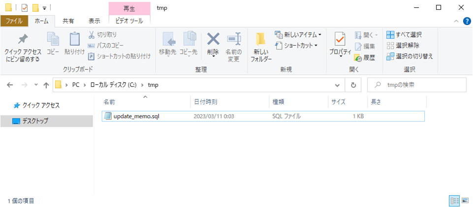 3) 以下のように、user_dataテーブルを更新するためのSQLファイルを、「C:\tmp\update_memo.sql」に配置する。