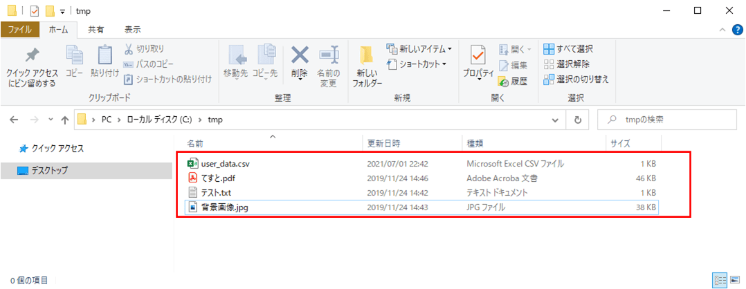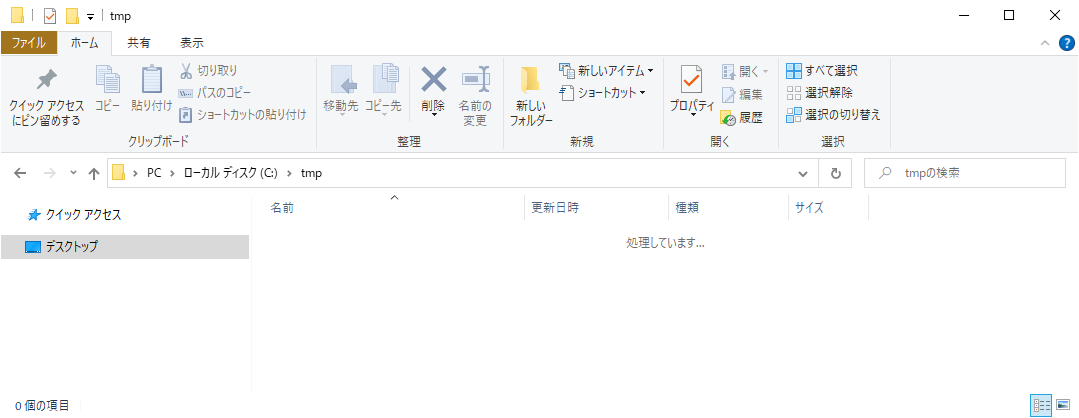 1) 「C:\tmp」フォルダ内のファイルが無い状態にする。