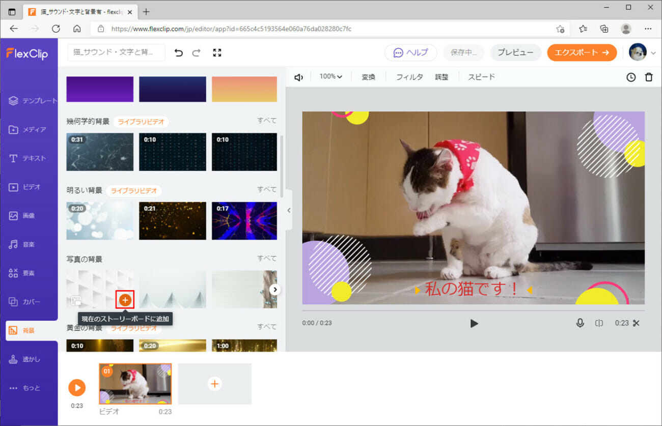 FlexClipでのカバー(背景)の追加