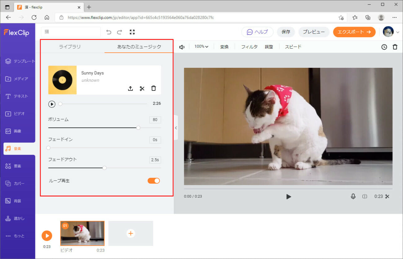 FlexClipでの音楽の追加