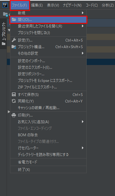 1) 以下のように、IntelliJ IDEA上で、あるプロジェクトを開いておく。