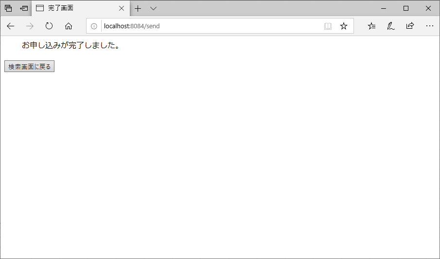 2) Spring Bootアプリケーションを起動し、「http:// (ホスト名):(ポート番号)」とアクセスし、「検索」ボタンを押下