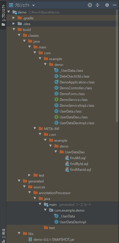 サンプルプログラムをビルドするには、ビルド前にSQLファイルをクラスパスが通ったMETA-INFディレクトリ下に配置する必要がある。その手順は以下の通り。