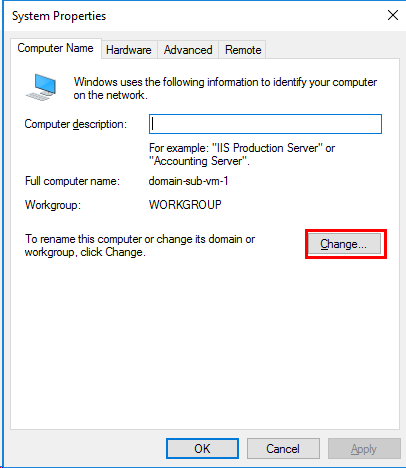 2) 「コンピュータ名(Computer Name)」タブが表示された状態のまま、「変更(Change)」ボタンを押下